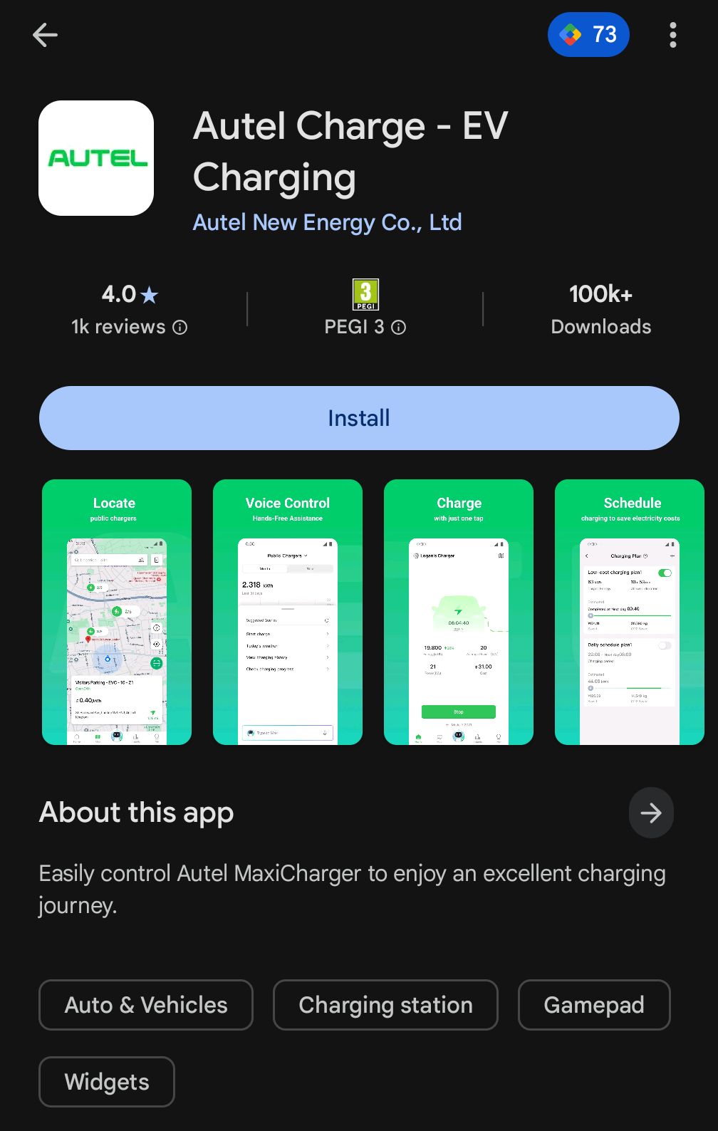 Download the Autel Charge app on your phone. The charger has a QR code on it which you scan in the app and it connects via Bluetooth. You will need to enter the PIN to connect.